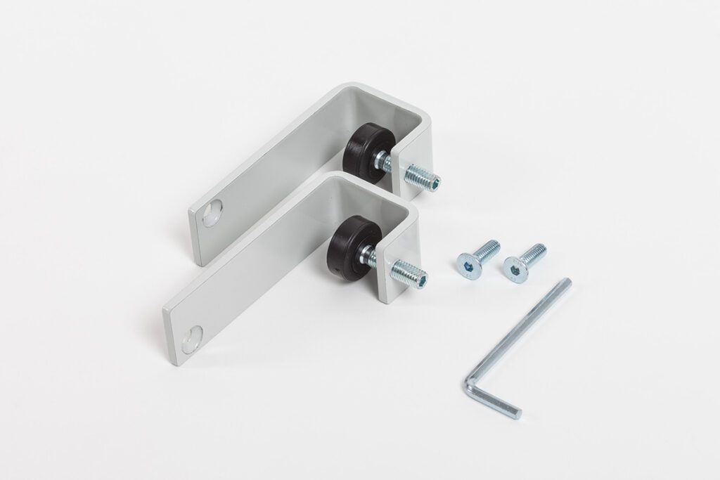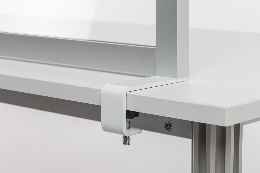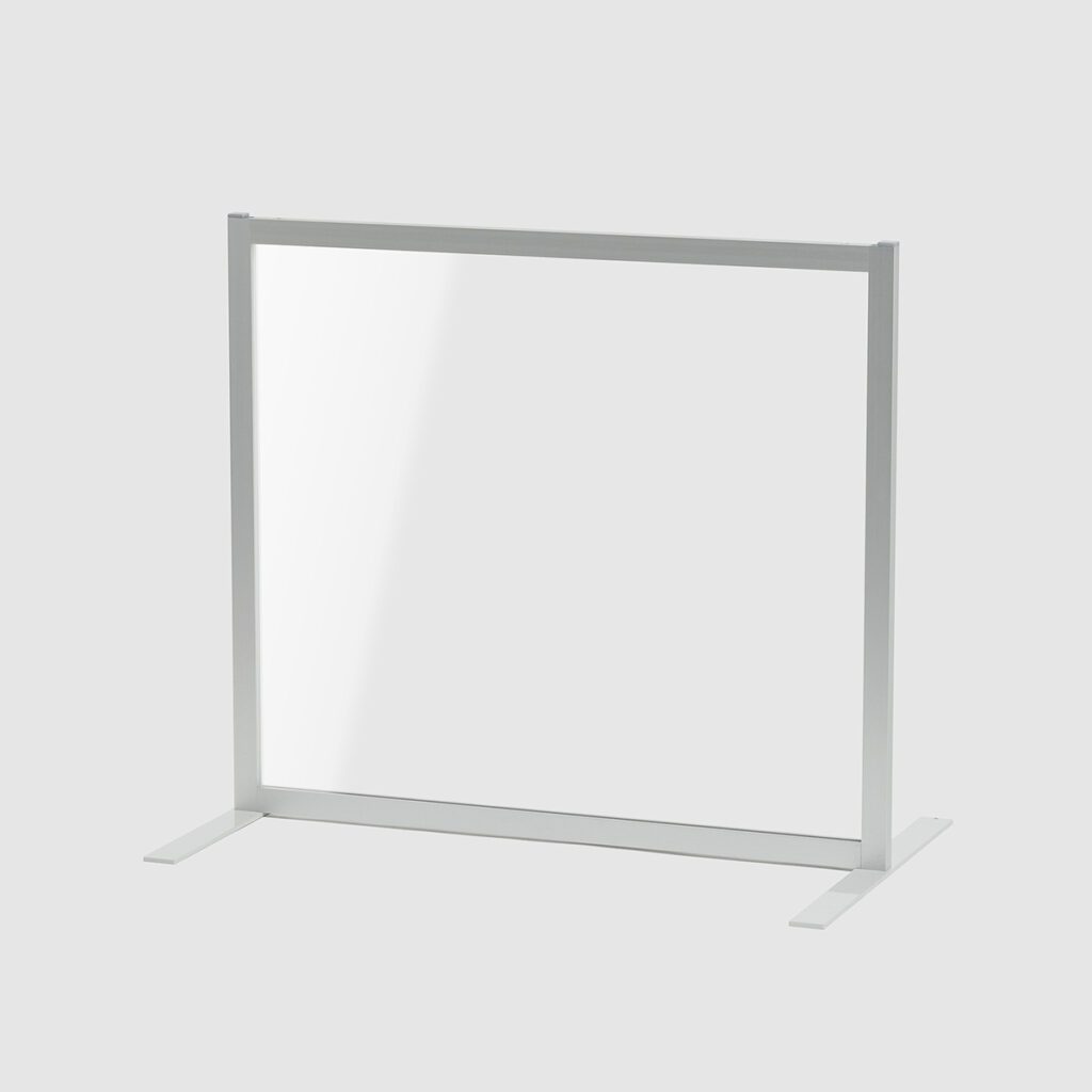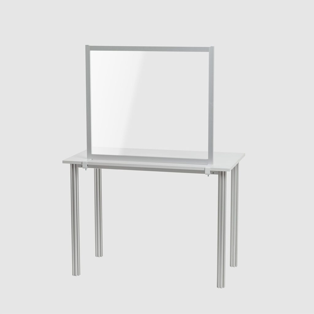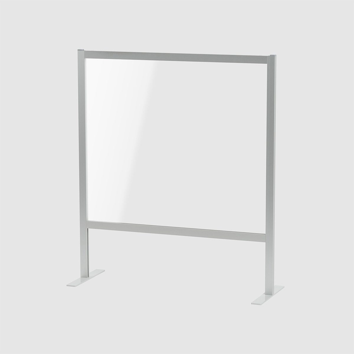 Rahmen aus eloxierten Aluminiumprofilen.Pulverlackierte Stahlfüße zum Anschrauben (Füße T 50 x B 4 x H 0,5cm).Mit Acrylscheibe.